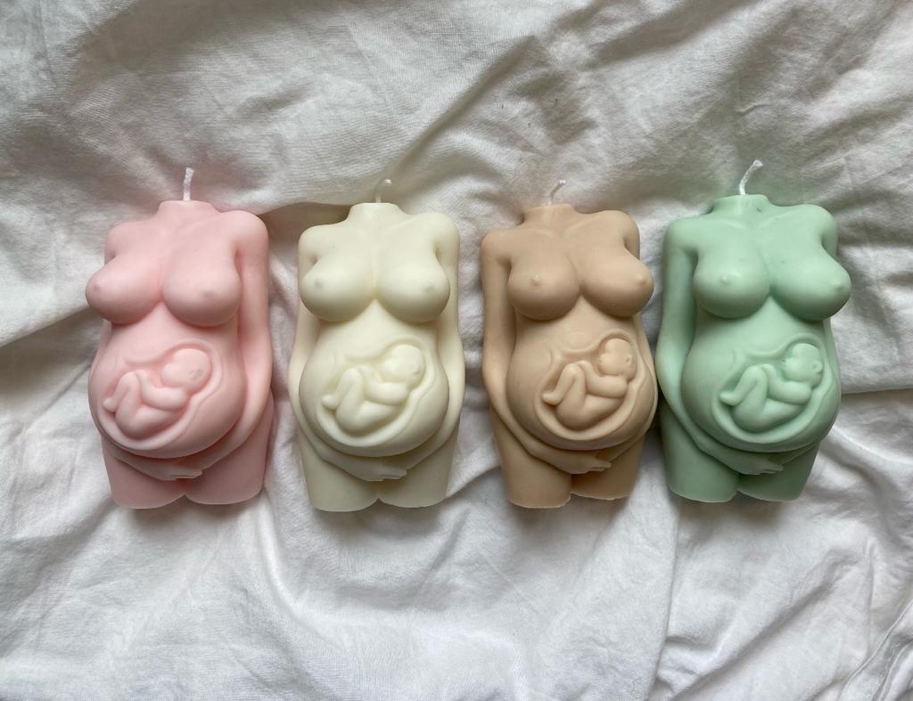 Uma vela inspirada na gravidez que homenageia todas as maneiras que significa ser mãe.